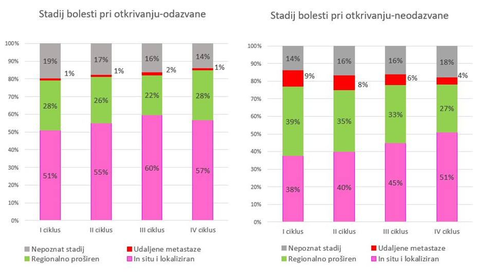 Slika 1. Stadij prilikom otkrivanja raka dojke, prema statusu odaziva u program
