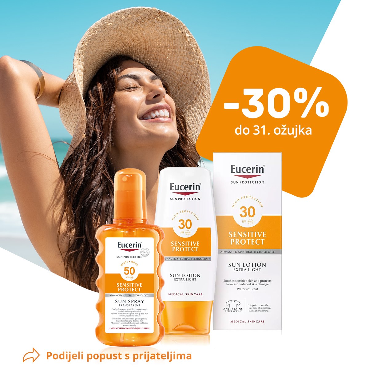 Došlo je proljeće, a uskoro i više temperature i boravak na otvorenom. Eucerin Sun proizvodi pružaju pouzdanu zaštitu od sunca za sve tipove i indikacije kože. Pronađite ih na velikom popustu u svim našim ljekarnama.